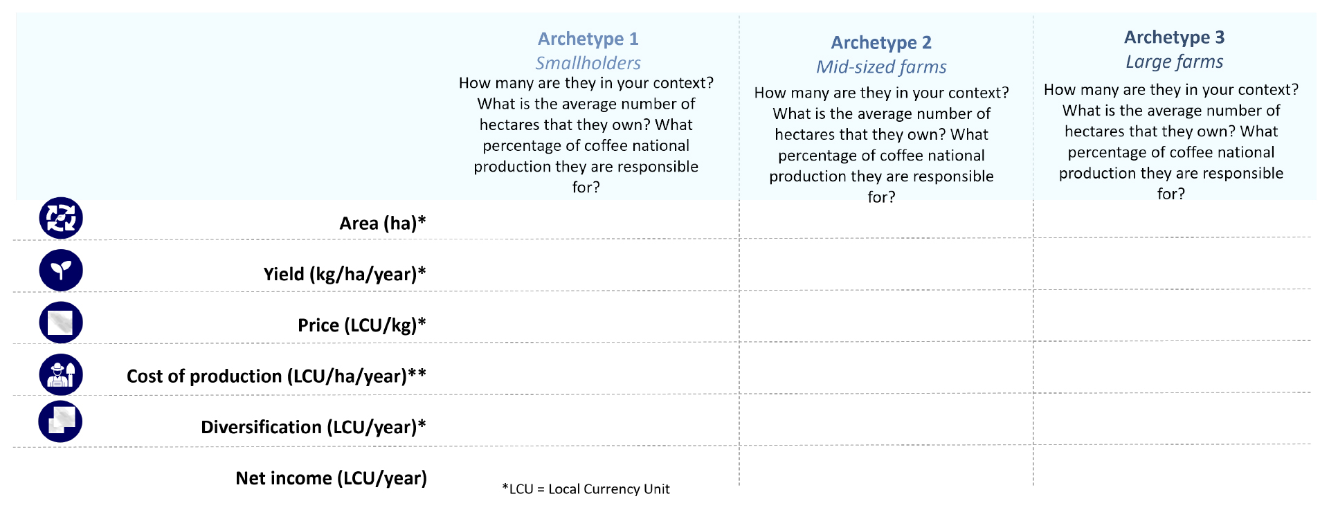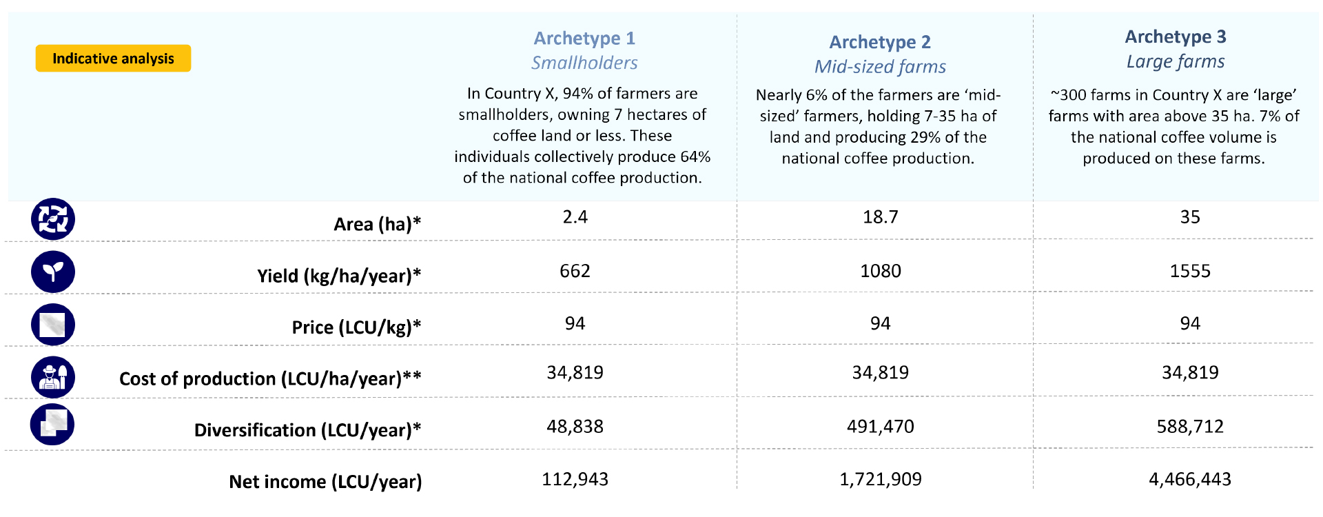 Determine the key parameters according to which you create an archetype: e.g., farm size, yield levels, or climatic conditions.