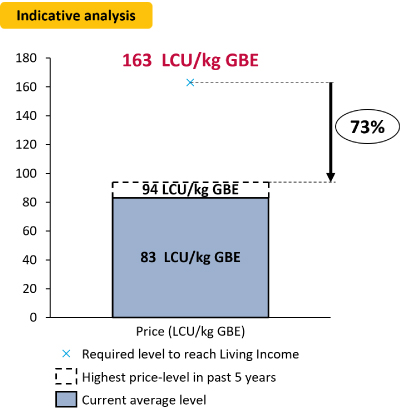 Required farm-gate price of green coffee (GBE) to reach a Living Income – all other variables equal