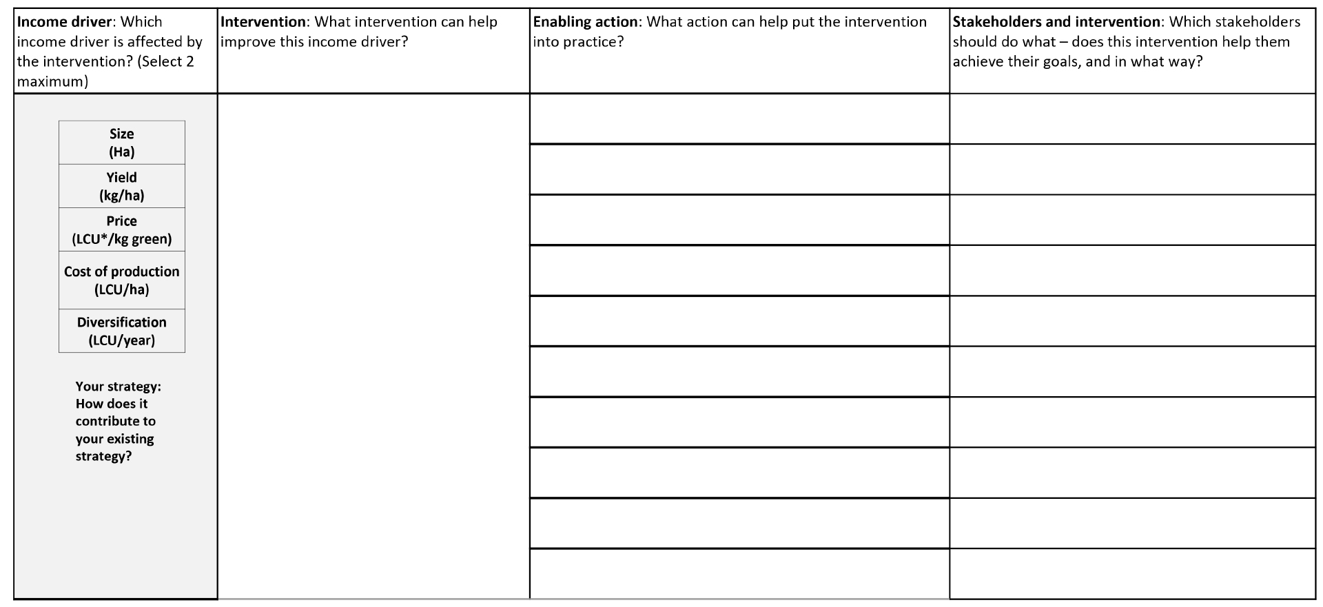 Using the same case from the previous sub-steps, please see below the example of a ‘smart mix’ which includes all five income drivers to improve incomes and reach a living income over time”
